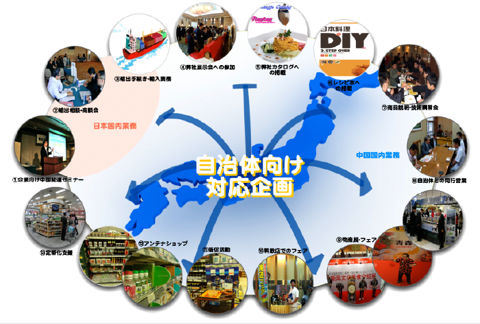弊社は、自治体様の中国での食品等の展開のお手伝いをするべく数々の受託事業を行っております。